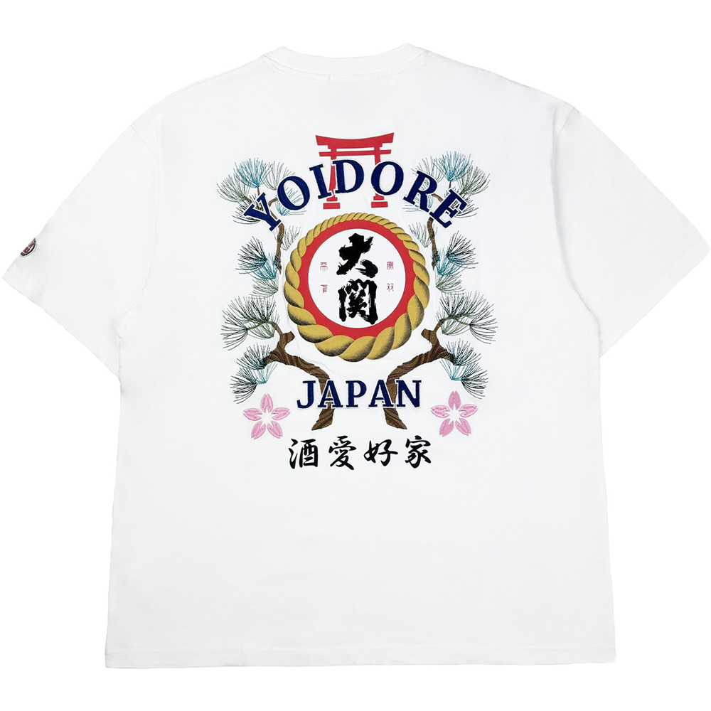 「酔」「YOIDORE]「JAPAN]の文字、桜や松は高級感ある刺繍で表現。